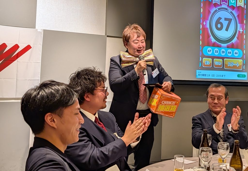 ビンゴ大会では、幹事自ら楽しむ姿と会場全体を巻き込む演出により、終始笑顔と歓声に包まれ、大変盛り上がりました。🎁💕